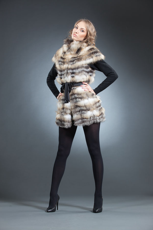 У лисы есть один визуальный недостаток – жилетка из лисы сильно полнит. Особенно это заметно на невысоких фигурах, не говоря уже про полных женщин. Чтобы ослабить этот эффект, нужно использовать кожаные или замшевые вставки по бокам жилетки.