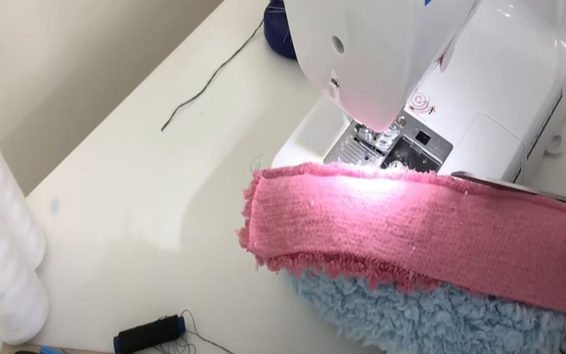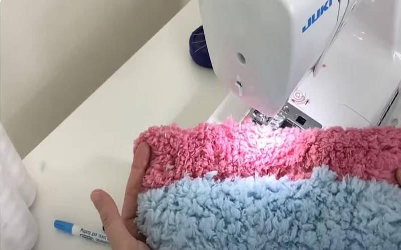 - После этого нужно прошить все изделие по периметру и обработать края покрывала оверлоком.