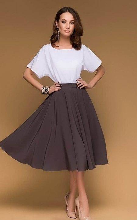 - Миди. Универсальная длина, подойдет молодым и взрослым модницам. Пышная юбка оптимальна для ретро-стиля, романтичных луков, сдержанный фасон подойдет для составления повседневных, деловых образов. Модели противопоказаны обладательницам небольшого роста.