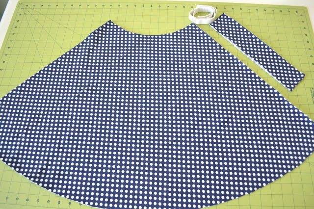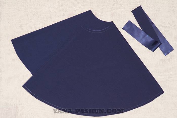 Пояс. На оставшейся ткани вырежьте прямоугольник шириной 11 см и длиной равной обхвату бедер. Складываем пояс пополам в длину и прошиваем.