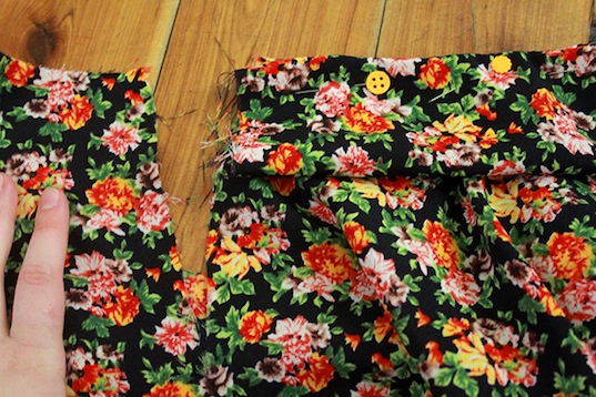 - Подметать, отшлифовать перед и спинку юбки по лицевым боковым вырезам.