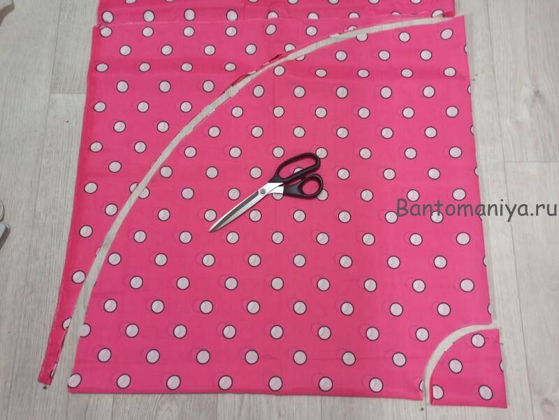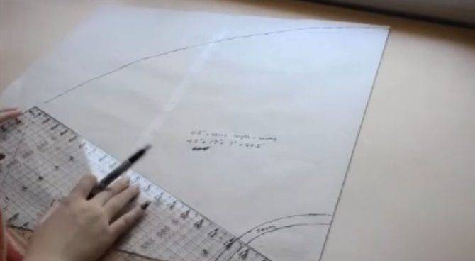 Радиус внешнего круга высчитать ничуть не сложнее: он равен выбранной длине юбочки плюс один-два сантиметра (припуски на швы для обработки нижнего края изделия). Перепроверьте все расчёты и постройте выкройку (на кальке или сразу на ткани).