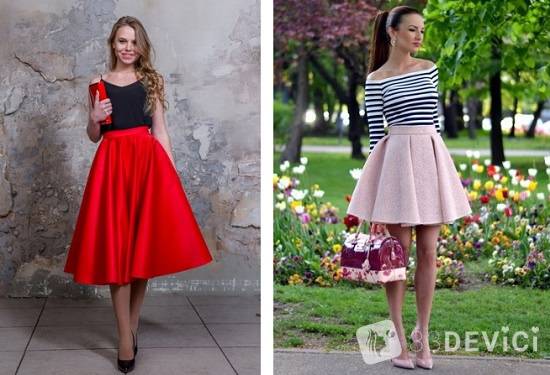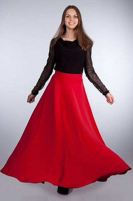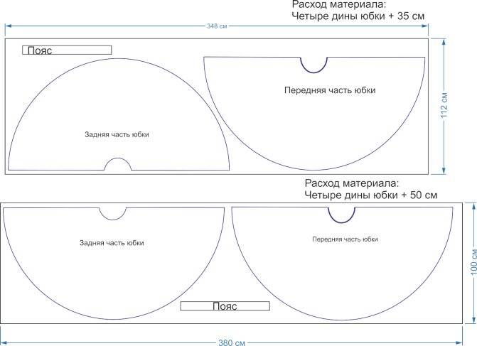 Самые популярные и простые в крое – юбка-солнце и ее аналог – полусолнце, меньше в объеме в 2 раза.
