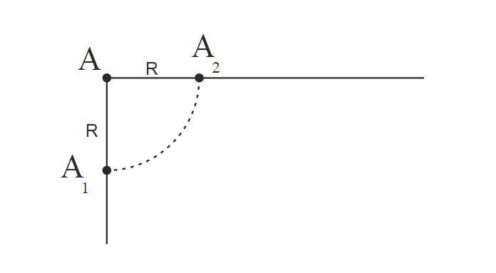 - Соедините H1 и H2 окружностью, центр которой все еще находится в точке A.