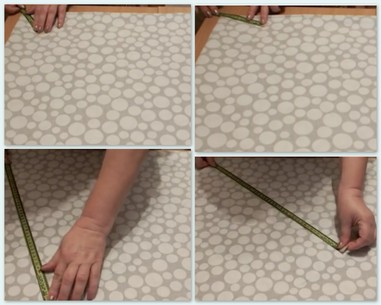 Складываем материал пополам и от угла откладываем наш первый расчет R1, в моем случае это 12 см.
