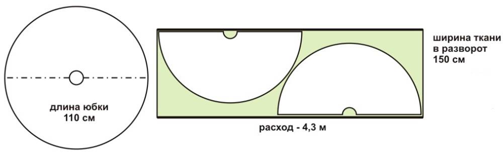 Если немного округлить, то получится 1,5 м ткани потребуется для юбки-солнца.