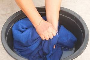 - Если на вещи нет видимых затертостей или пятен, то просто намочите ее, прополощите несколько раз и высушите на сквозняке.