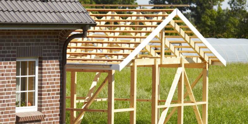 После того как установлены балки перекрытия и если не предусмотрен второй этаж, наступает черед монтажа стропильной конструкции для кровли, к которой будет крепиться обрешетка.