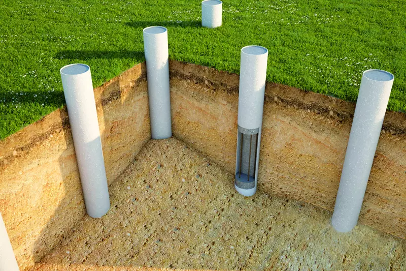 Его устройство вполне возможно своими силами и в максимально сжатые сроки, прежде всего за счет того, что количество земляных работ небольшое. Достаточно, в соответствии с расчетами, подготовить скважины соответствующего диаметра и на необходимую глубину, учитывая при этом промерзание грунта в зимний период.