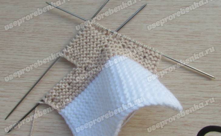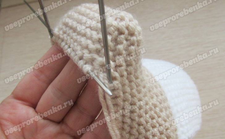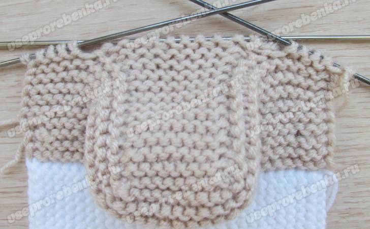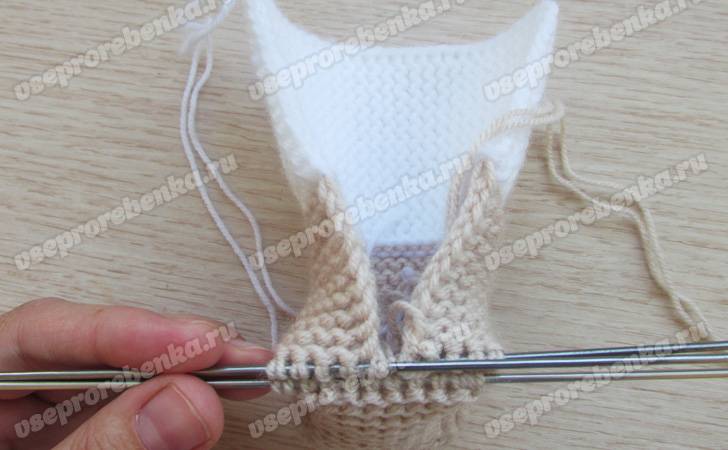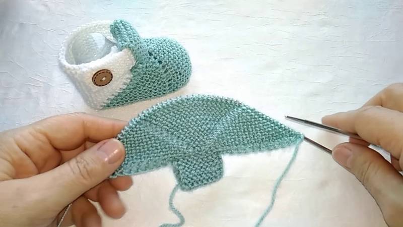 Деталь пинетки спицами для новорожденных на круговых спицах