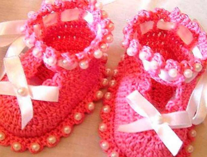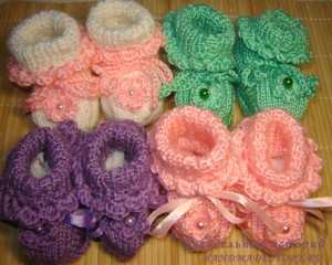 - Для лета выбирают открытые, дышащие модельки, а на зиму вяжут теплые и высокие пинетки в форме сапожек.