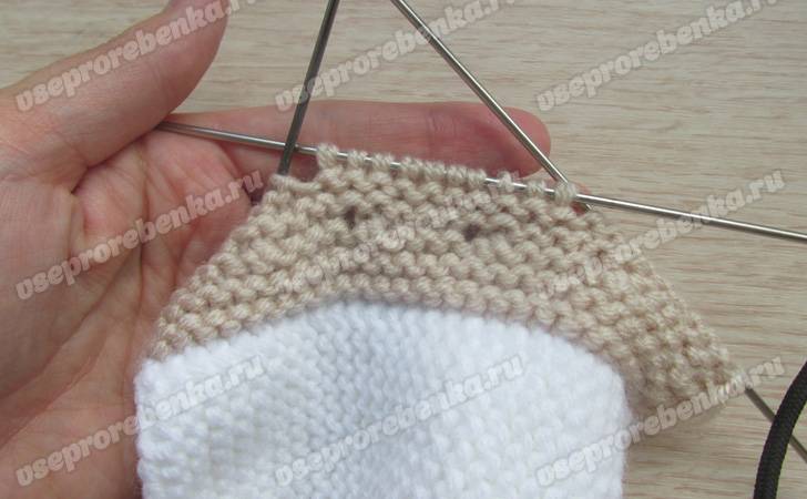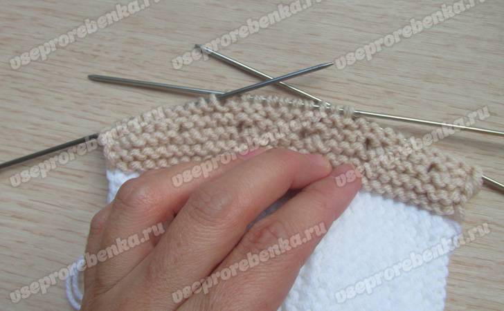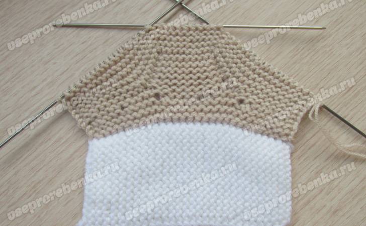 Деталь с дырочками на пинетке спицами для новорожденных на круговых спицахОписание к простым пинеткам спицами для новорожденных на круговых спицах