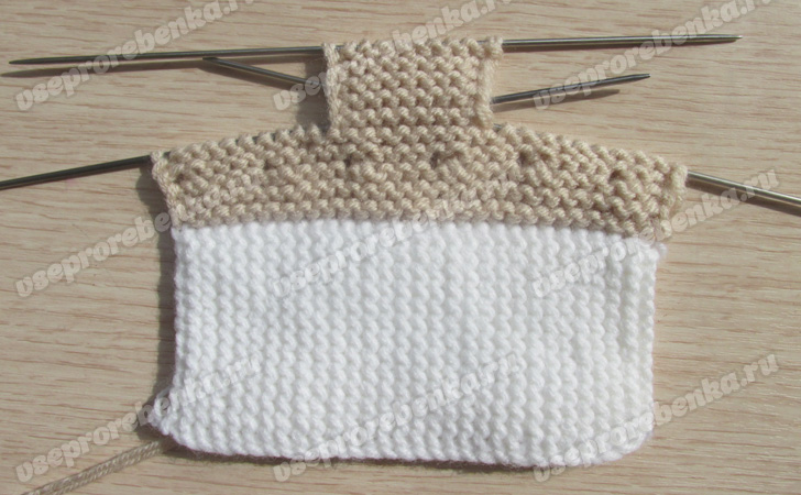 Провязываем вторые 10 петель, еще набираем 7 петель с другого края и провязываем последние 10 петель.