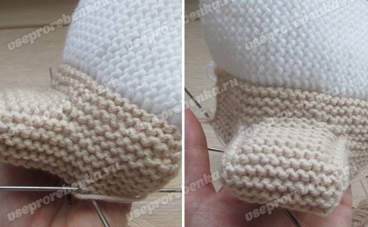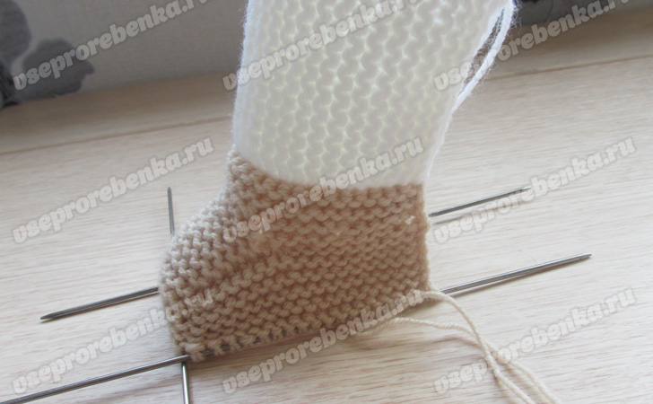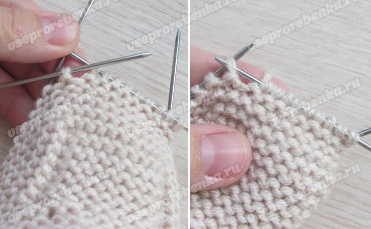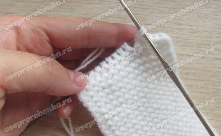 Пинетки полностью вяжутся платочной вязкой (и лицевые и изнаночные ряды вяжем лицевыми петлями).