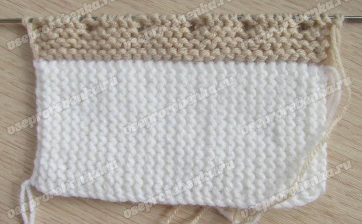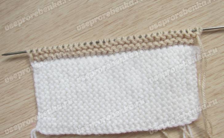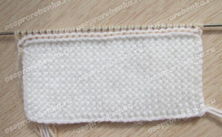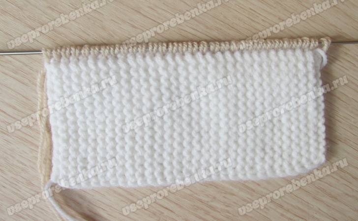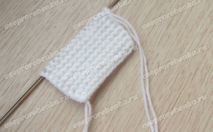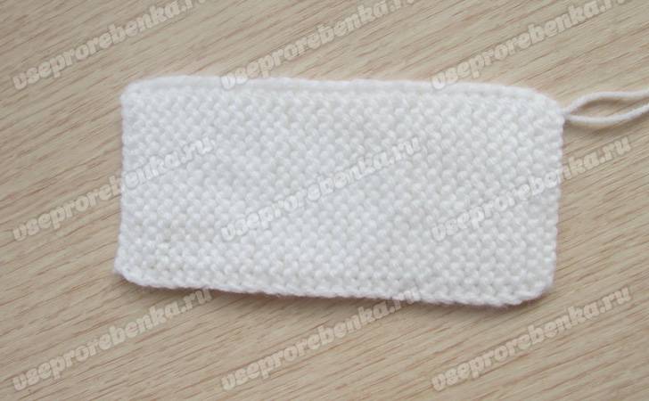 Провязываем около 13 см платочной вязкой (у меня получилось 56 рядов) и закрываем петли.