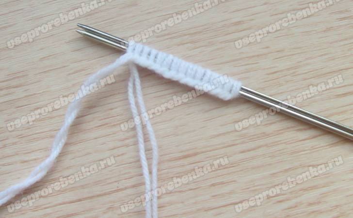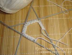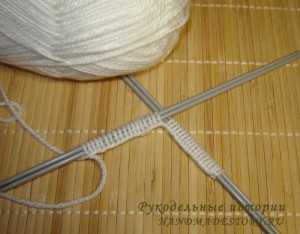 1 ряд: берем круговые спицы и набираем белой пряжей ровно 33 петли.