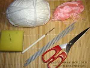 - Белая пряжа (30%акрил, 70 %шерсть) – 60 г.