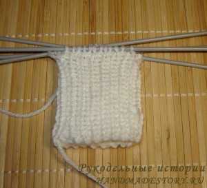 Откладываем первые и последние 10 петель в сторону. Вяжем средние 10 петель 10 рядов.