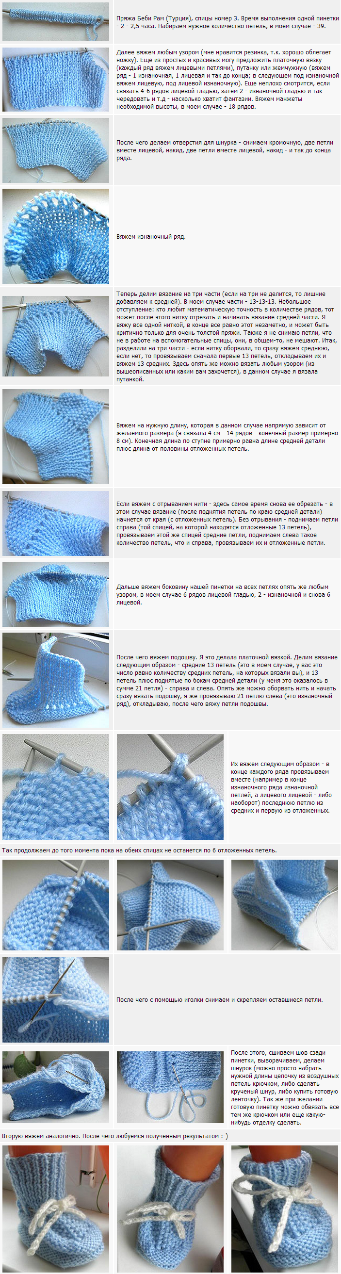 Как связать пинетки без шва на пяти спицах | Рукодельные истории handmadestory