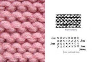 - После нескольких рядов выполните один ряд кирпичной вязкой: смысл, как и в резинке, только в каждом следующем ряду над передней петлей выполняйте изнаночную петлю и над изнаночной – переднюю