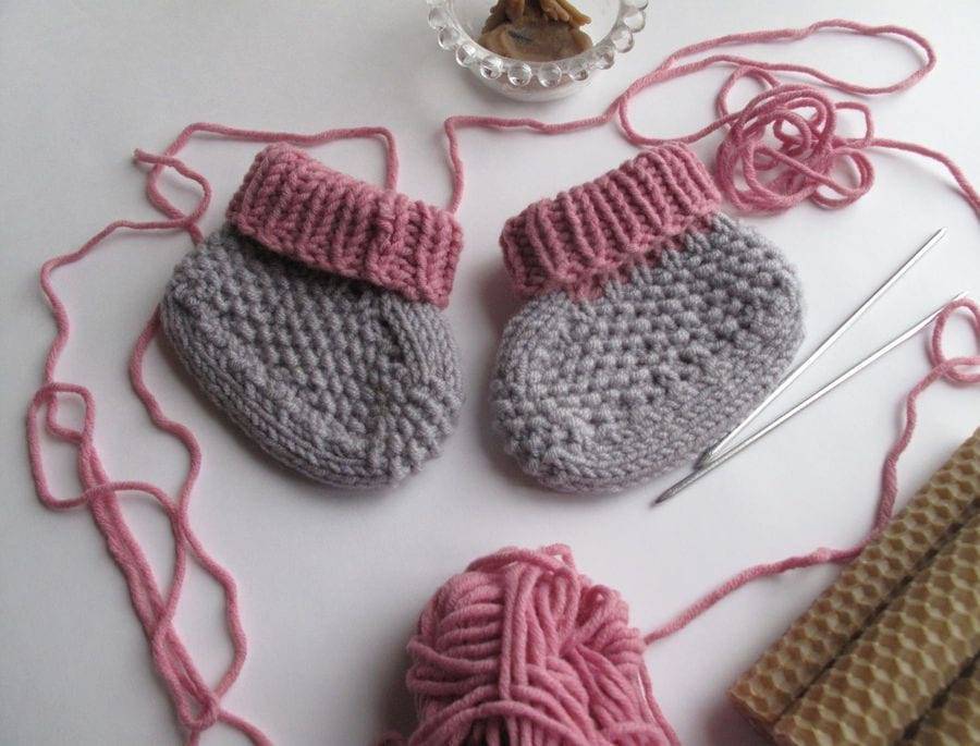 Учимся вязать простые пинетки спицами для новорожденных на круговых спицах: описание, схема, фото