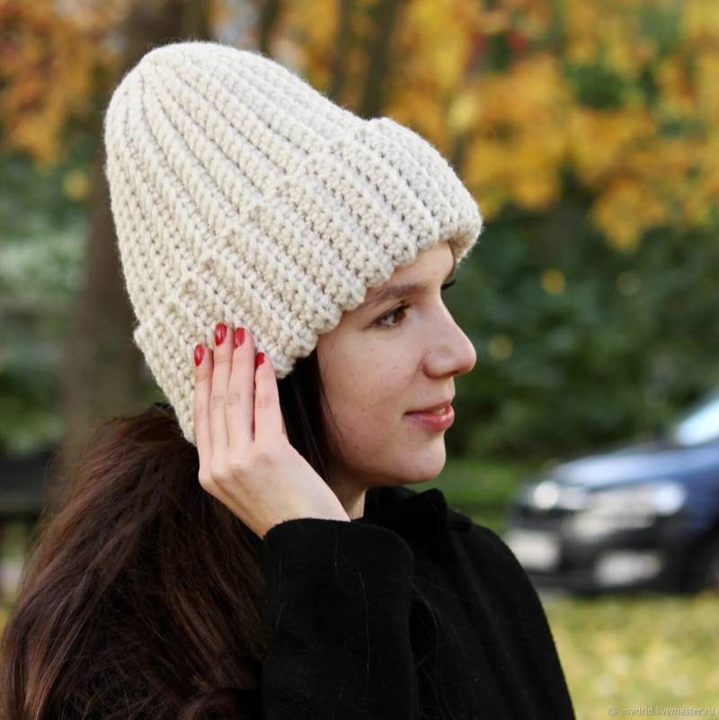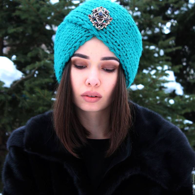 Стильная женская зимняя шапка спицами, схемы с описанием