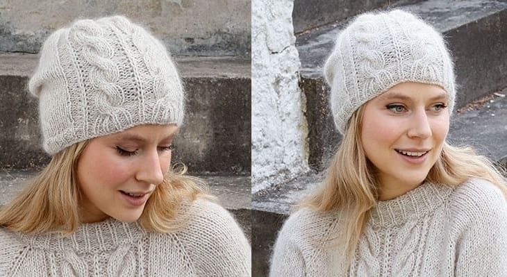 Эта чудесная мягкая шапка в стиле бини выполняется из пряжи Дропс Sky и Kid Silk. Мы подробно на сайте рассматривали этот модный фасон и составили коллекцию описаний к шапочкам бини спицами. Читайте здесь.