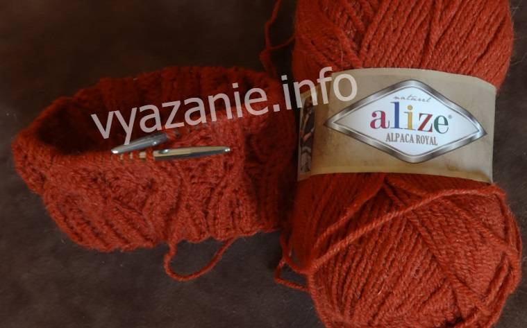 Зимняя объемная шапочка с отворотом, для нее подойдет тонкая шерсть в несколько сложений. Здесь используется пряжа в 5 сложений для резинки, и в 7 сложений – для основной части шапки. Данный мини мк подходит для размера 54. Для большего размера возьмите пряжу потолще, или спицы большей толщины, либо возьмите не 7, а 8 раппортов для основного узора с аранами.