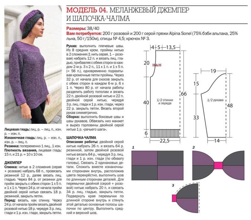 Для создания такой шапочки потребуются розовая и лиловая пряжа в две нитки: