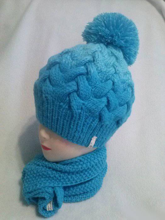 Вязание шапки косами и градиентом.Knitting hats and braids gradient