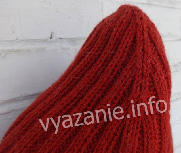 - Связывайте в резинку 1×1 или 2×2 на высоту около 5-7 см, чтобы создать манжету для шапки.