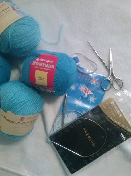 Понадобится по 1-му мотку. Спицы на короткой леске № 3,5 и № 4,5.