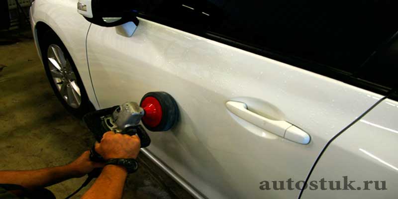 Мелкие царапинки, видные только на свежевымытом и сухом автомобиле, устраняются обычной полировкой поверхности. Более глубокие дефекты, не задевшие слой грунтовки, исправляются при помощи абразивной полировки. Такие пасты снимают верхний слой покрытия, что делает дефекты незаметными на общем фоне. Наносят эти средства либо вручную интенсивными круговыми движениями, либо при помощи полировальных машинок.