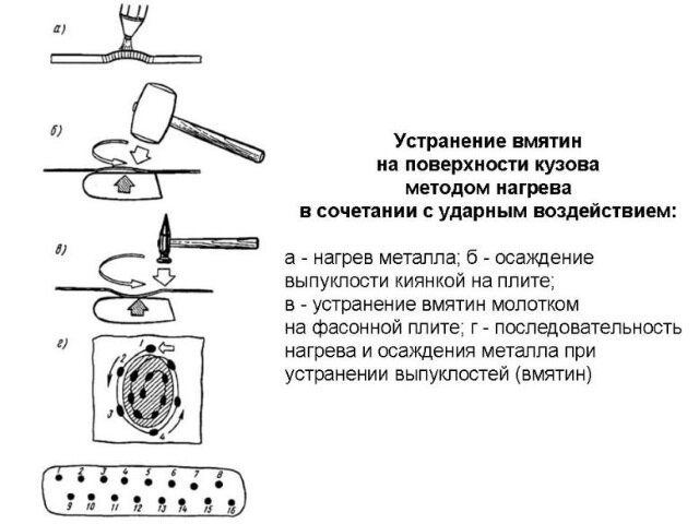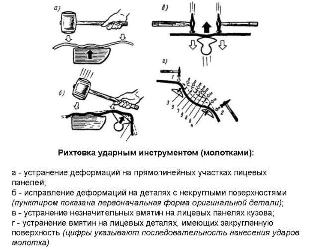 Этот метод подходит исключительно для тех случаев, когда есть непосредственный доступ к внутренней стороне детали. Принцип устранения дефекта основывается на том, что нужно осуществлять выстукивание дефекта в обратную сторону. Делать это необходимо аккуратно, чтобы не повредить лакокрасочный слой.