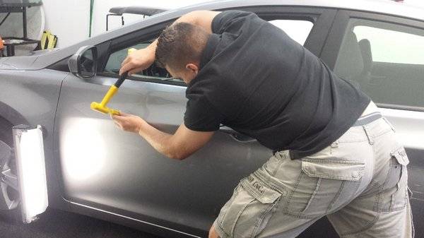 Особое внимание нужно обратить на лакокрасочное покрытие кузова. Если на какой-либо вмятине оно повреждено сильно, то справиться с ее устранением без восстановления краски не получится