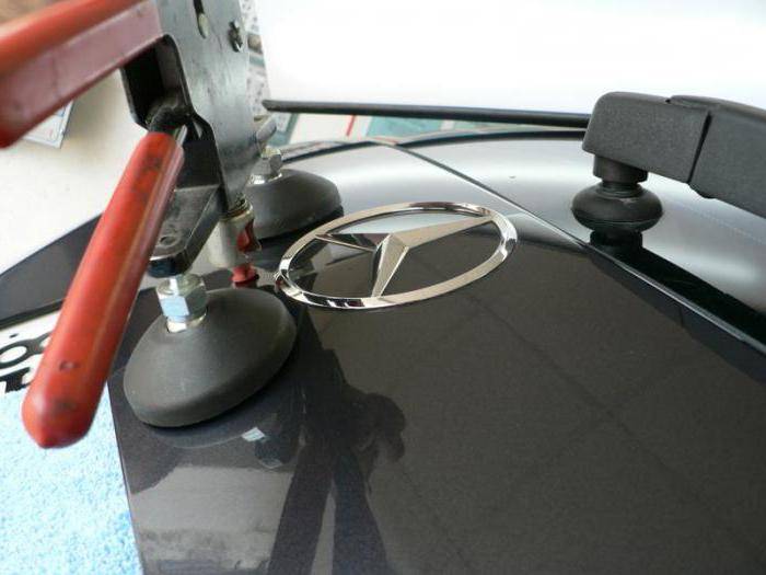 В автомагазинах можно найти присоски (аппликаторы), которые предназначены для удаления небольших (длиной, шириной или диаметром менее 20 см) вмятин без покраски, а также специальный гель или клей к ним. Вакуумные присоски проще в работе, ведь не нужно после каждой операции аккуратно очищать следы клея.