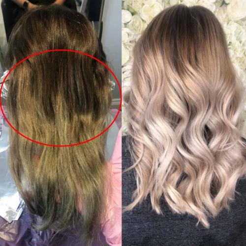 Как правило, нежелательные тона у блондинок после неудачного окрашивания проявляются более отчетливо и неравномерно. Поэтому их так хочется поскорее нейтрализовать. Для этого придется прибегнуть к деликатным процедурам, требующим многократного повторения.
