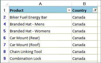 На следующем листе фильтр доступен для столбца Продукт , но он не использовался. Для сортировки данных использовался фильтр в столбце Country .