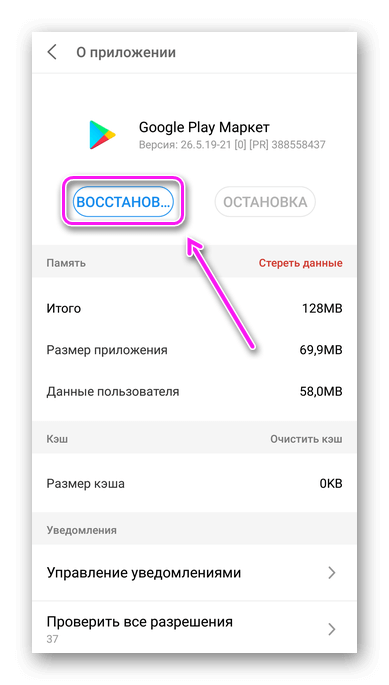 - Отмечают «Очистка внутренней памяти» и жмут «Восстановить».