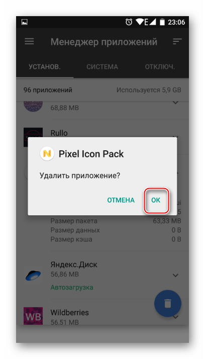 - Согласитесь избавиться от ПО тапнув по «ОК».