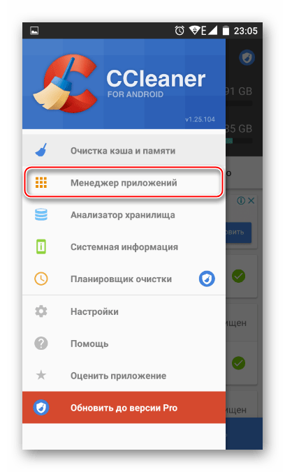 Если в вашем смартфоне или планшете установлено какое-либо программное обеспечение, отвечающее за работу с приложениями, или вы только хотите его установить, то примерный порядок действий будет таким, как в приложении CCleaner: