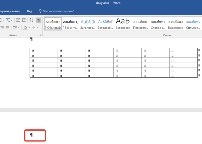 - Выделить непечатаемые символы, нажав на символ ¶;