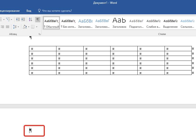 - Выделить непечатаемые символы, нажав на символ ¶;