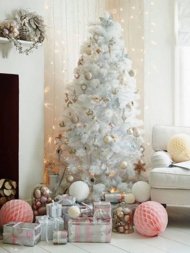 Теоретически, белый – это универсальный цвет, который придаст интерьеру элегантность в сочетании с золотом или серебром или с такими как красный или бирюзовый. Итак, вписывается ли белая ёлка в любой интерьер?