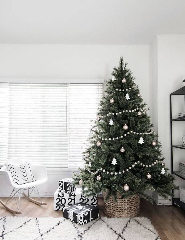 Прочитав советы по дизайну интерьера, вы узнаете, что белая ёлка может хорошо смотреться в минималистском интерьере. Не путайте его с рустикальным или скандинавским и гламуром. Любители последних часто думают о том, чтобы в гостиной появился искусственный снег.
