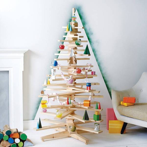 , к примеру, вся украшенная в красном или желтом цвете. А можно сделать импровизированное дерево, созданное из подушек, компьютерных дисков, книг, веток, палок