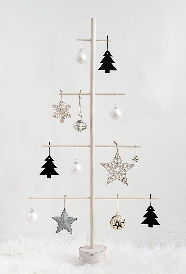 Иногда такие праздничные деревья украшают многочисленными натуральными шишками, которые были украшены ранее. Их можно покрыть краской, часто на поверхность распыляется белая краска из баллона, создавая красивую и аккуратную имитацию снега. Также разрешается украсить их мелкими серебряными или золотыми блестками.