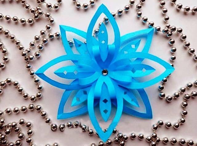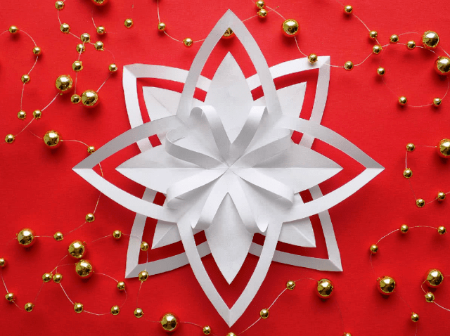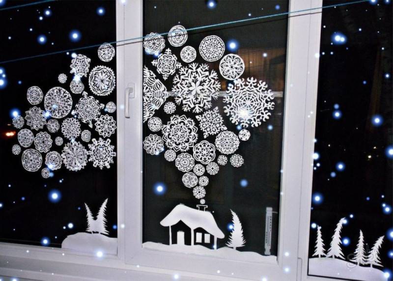 - , вырезанные из белой или цветной бумаги. Существует множество трафаретов, позволяющих вырезать различные по форме и дизайну снежинки.