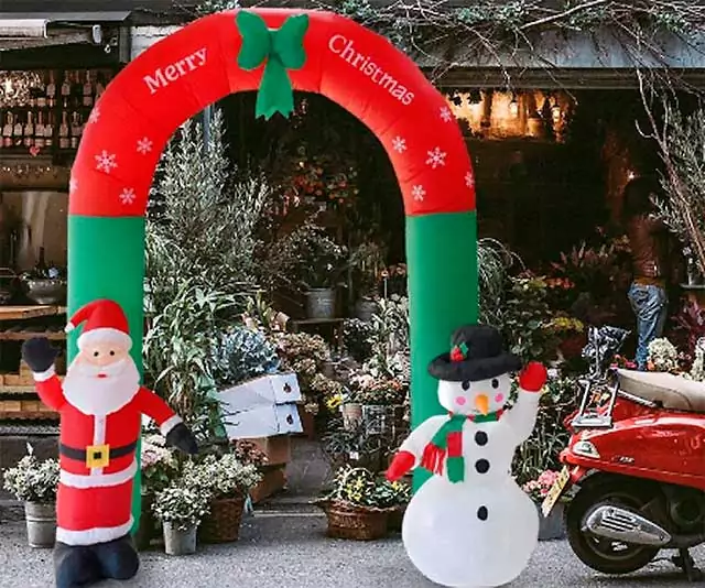 Простое решение — приобрести надувную арку в новогоднем дизайне.