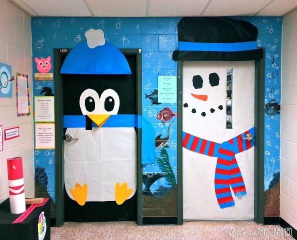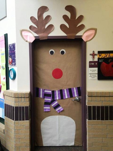 Двери в любом помещении, — это, своего рода, его визитная карточка. От их внешнего вида и состояния зависит первое и самое запоминающееся восприятие пространства. Двери школьного кабинета, как правило, не отличаются особенным разнообразием фактур и цветов, эти детали внутреннего пространства имеют достаточно стандартные внешние черты. Поэтому, при украшении дверей можно использовать всю свою фантазию, особенно если повод для декораций – Новый год.